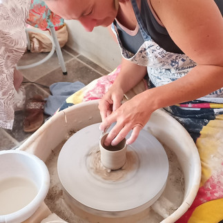 J'aime accompagner dans l'apprentissage du tournage, les petits groupes me donne la possibilité d'être présente à chacun, chacune. Merci pour la belle énergie de groupe, chacune avec sa sensibilité, sa personnalité, de belles créations "en terre" ont vu le jour.